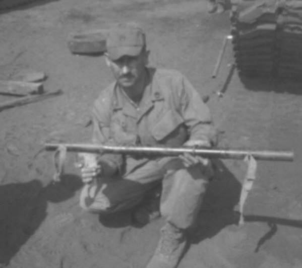 Sgt James Benham displaying a rocket laucher