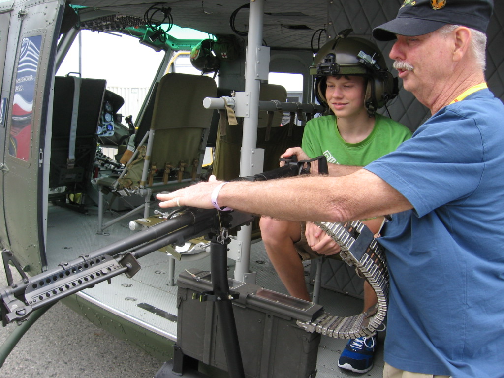 Dan Kavanaugh demonstrates door gunner duties to his grandson during a recent VHPA Reunion
