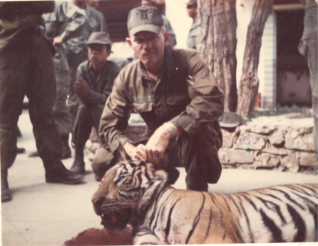 Captain Hudson at An Khe with marauding tiger (Pre Mother's Day)